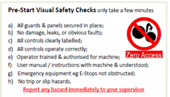 To ensure machinery remains safe to use between service intervals, daily pre-start checks are expected to be carried out on each item of plant, especially mobile plant.